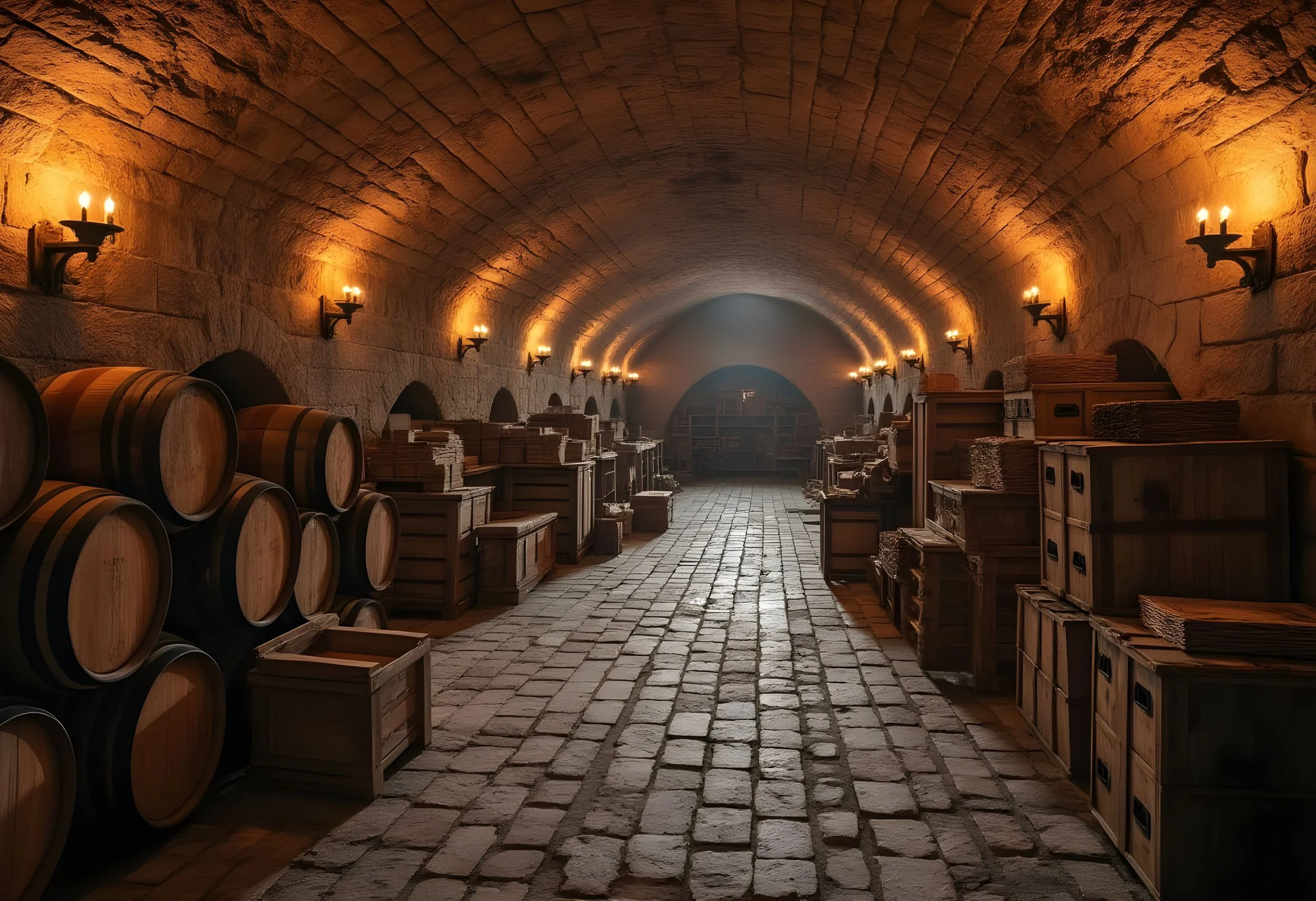 The undercroft level of Stachtenbaste serves as a functional and often foreboding part of the fortress, reserved for necessities the upper levels prefer to forget. It houses the larder, multiple storerooms used to stockpile provisions and supplies. It is also the location of the gaol, where disobedient conscripts, would-be escapees, or those under suspicion are confined, and the crypt for temporarily storing the dead prior to disposal.
